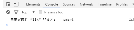 console.log('自定义属性 “lik” 的值为: ' + oDiv.getAttribute('lik'));