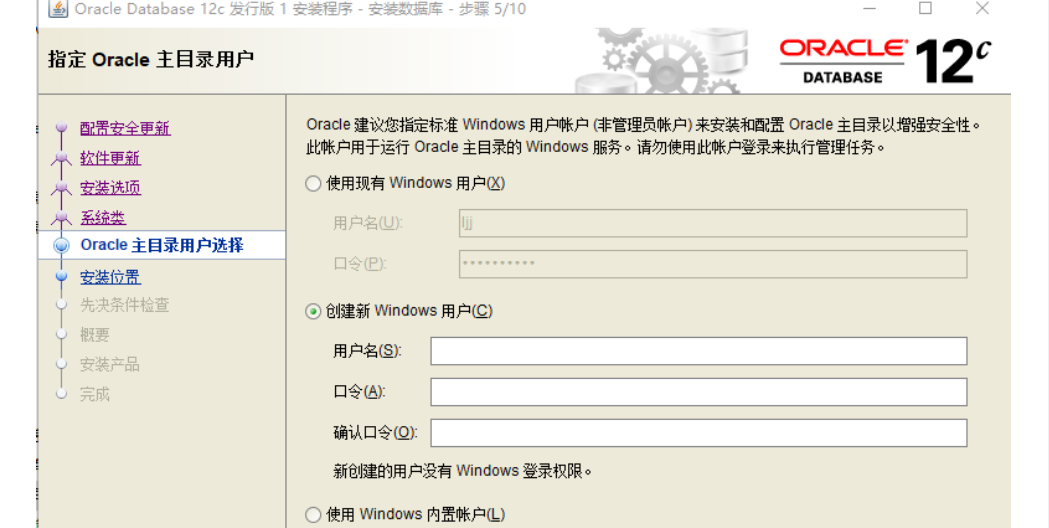 5选择第二个” 创建新 windows 用户 “,输入用户名和口令(随便什么 例如:admin ,1234),单击” 下一步