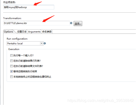 2.双击转换,选择我们刚刚自定义的转换.ktr文件,并自定义转换的名称