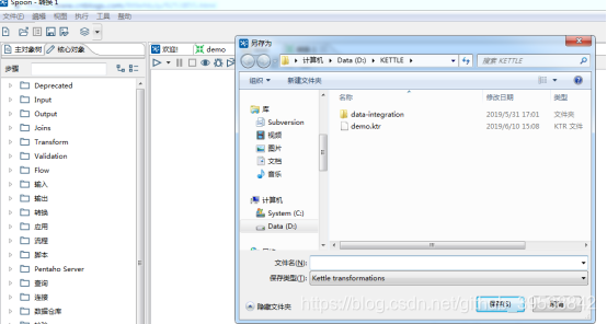 1.启动成功后,左上角点击”文件-新建-转换“保存为demo.ktr