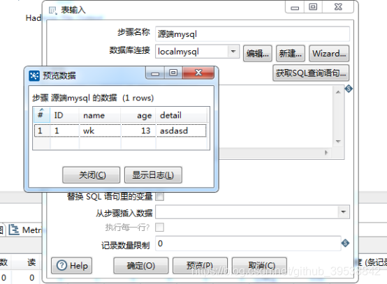 点击预览,填入想要查询的数据行数,如果能拿到数据说明mysql配置正确