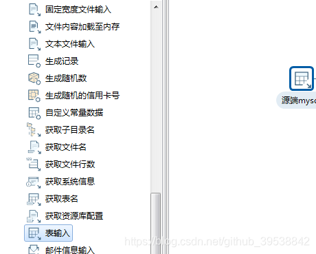 2.打开左侧 核心对象--》输入--》表输入,拖拽到中间
