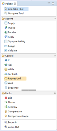 打开空间视图,Window->Show View->Palette,如图1.5,对应了第6张2.2小结里所有流程控制操作