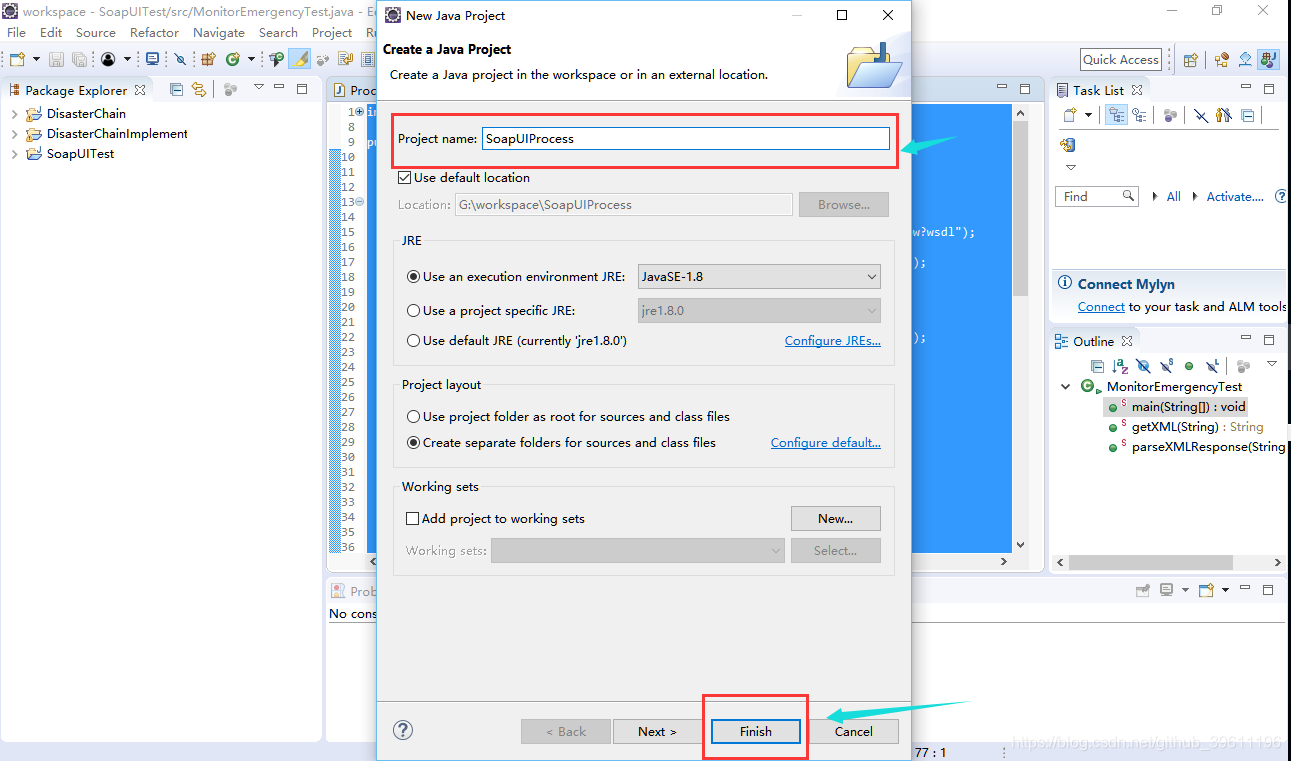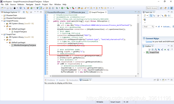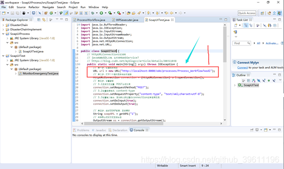 根据创建的BPEL工作流和SoapUI工程,修改上一步骤中添加到Java工程中的Java代码,主要需要修改三个位置。