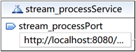 stream_process对应的stream_processArtifacts.wsdl文件的Server的SOAP地址需要手动修改,如图1.15,默认生成的地址位于Tomcat服务器中:http://localhost:8080/stream_process,需要修改到ODE服务器下:http://localhost:8080/ode/processes/stream_process,Ctrl+S保存。