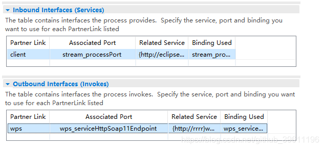 双击打开deploy.xml文件,配置Partner Link端口。client对应BPEL流程端口,选择stream_processPort;wps对应调用的外部服务wps_service端口,选择SOAP端口:wps_serviceHttpSoap11Endpoint,结果如图1.17。