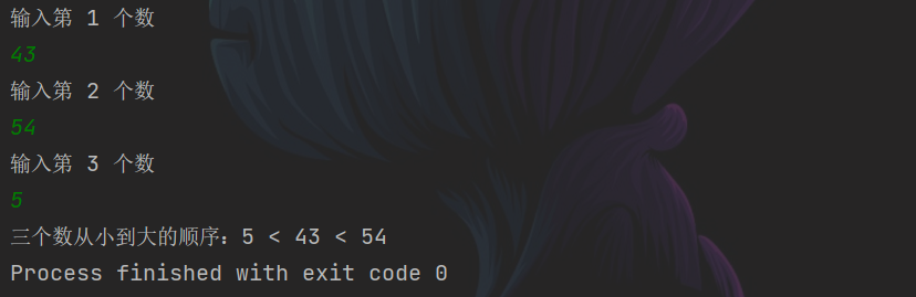 System.out.format("三个数从小到大的顺序:%d < %d < %d", num1, num2, num3);