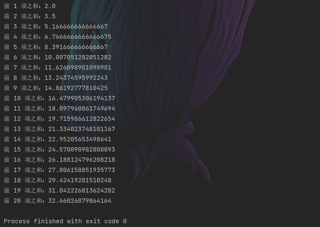 有一个分数序列:2/1、3/2、5/3、8/5、……,求出该数列的前 20 项之和。