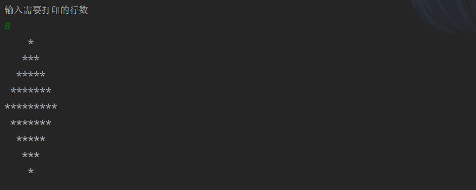 将菱形分为上下部分,然后穿插打印空格和 * 即可。