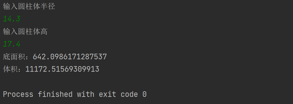 System.out.println("体积:" + cylinder.volume(radius, height));