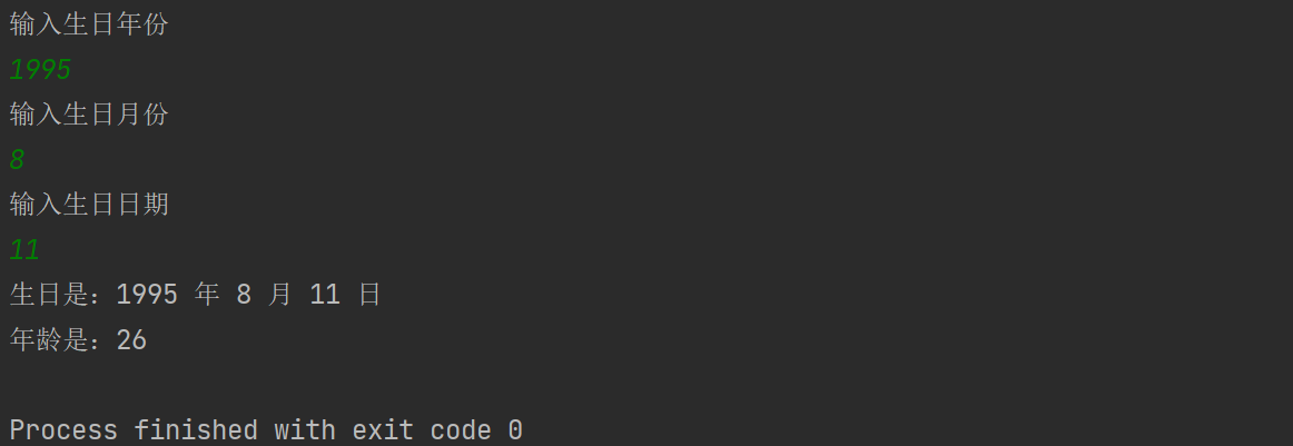 设计一个 Birthday 类,其成员变量有:year、month、day。提供构造方法、输出 Birthday 对象值的方法和计算年龄的方法。