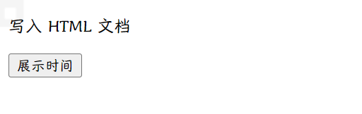 新建 HTML 文件并写入上述内容后,浏览器打开,页面会显示如下内容,可以看到用 document.write() 写入当前时间是成功的。但是需要注意的是,如果 document.write() 是和其他内容同时在内容加载完之前加载,则可以和其他内容一起显示。但如果等页面内容已经完成加载后执行 document.write(),那么之前页面加载完的内容都将被写入的内容所覆盖。