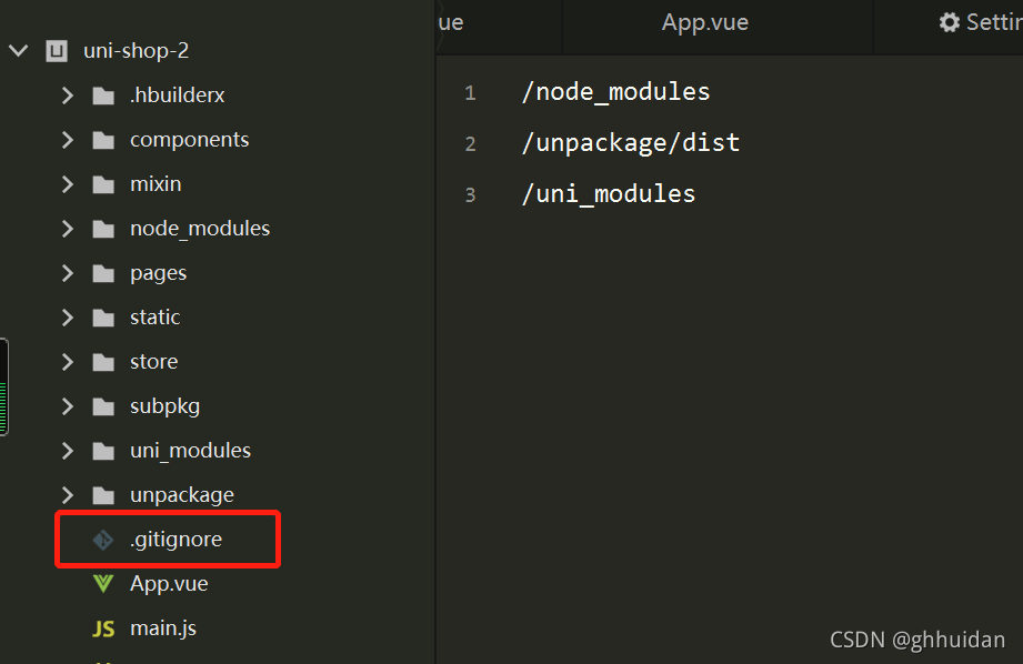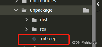 2, 由于unpackage文件中只有dist一个文件,所以dist被忽略后git将不会追踪这个空文件,因此要在这里新建一个git展位文件 —— .gitkeep