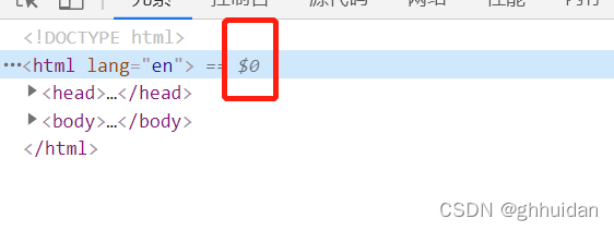 控制台中被选中的元素后面的$0代表:调试时所选中的元素,之后可在控制台通过$0访问调试该元素