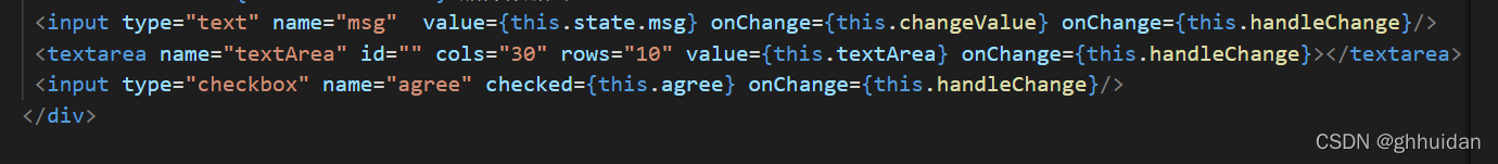 textarea,checkbox,selet等组件也一样,需要绑定value/checked值,以及onChange事件