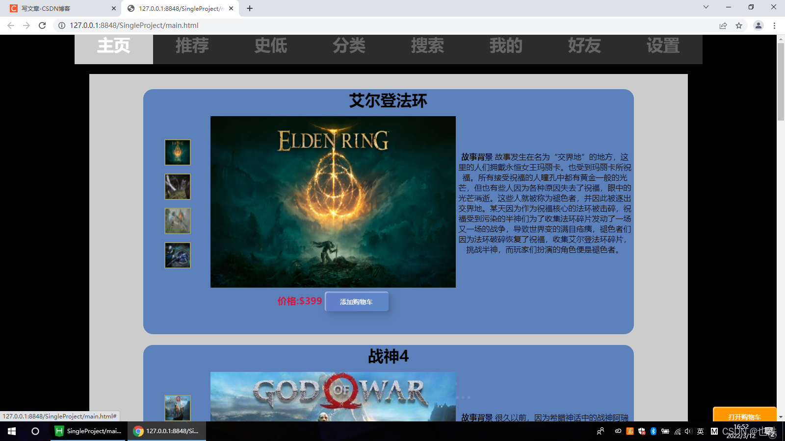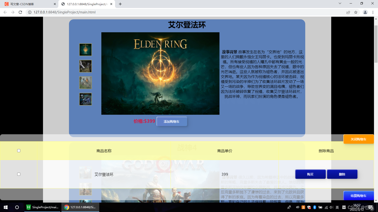 btn.textContent="关闭购物车"