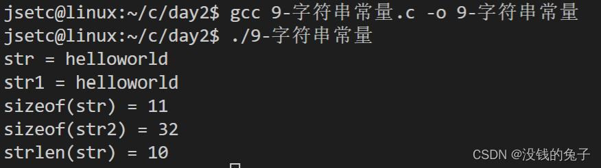 printf("sizeof(str2) = %ld\n",sizeof(str2));