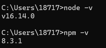 最后再检查一下,输入node -v和npm -v,出现对应版本号则证明Node.js已经启用成功。