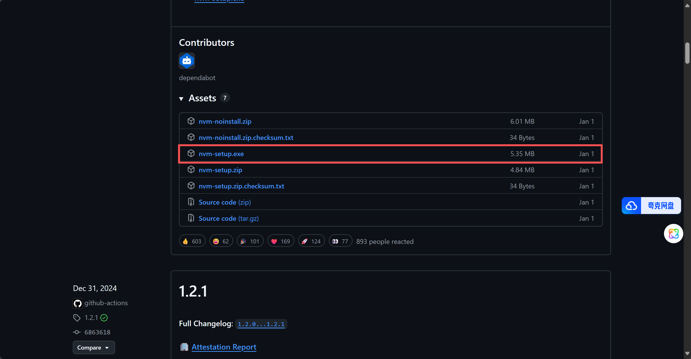 nvm官方下载网址:Releases · coreybutler/nvm-windows
