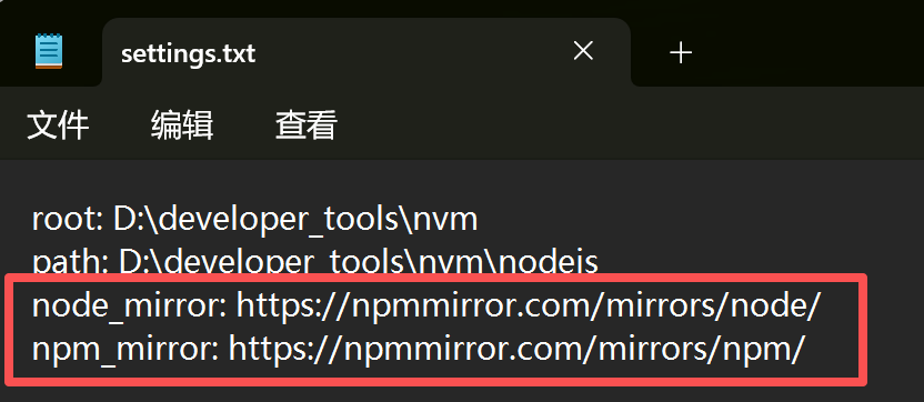 找到nvm安装路径下的setting.txt文件。