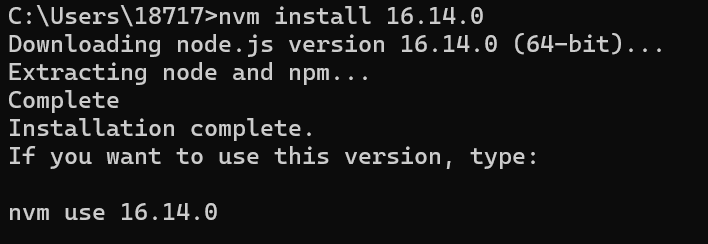 这里以下载版本16.14.0为例。秩序输入nvm install 版本号