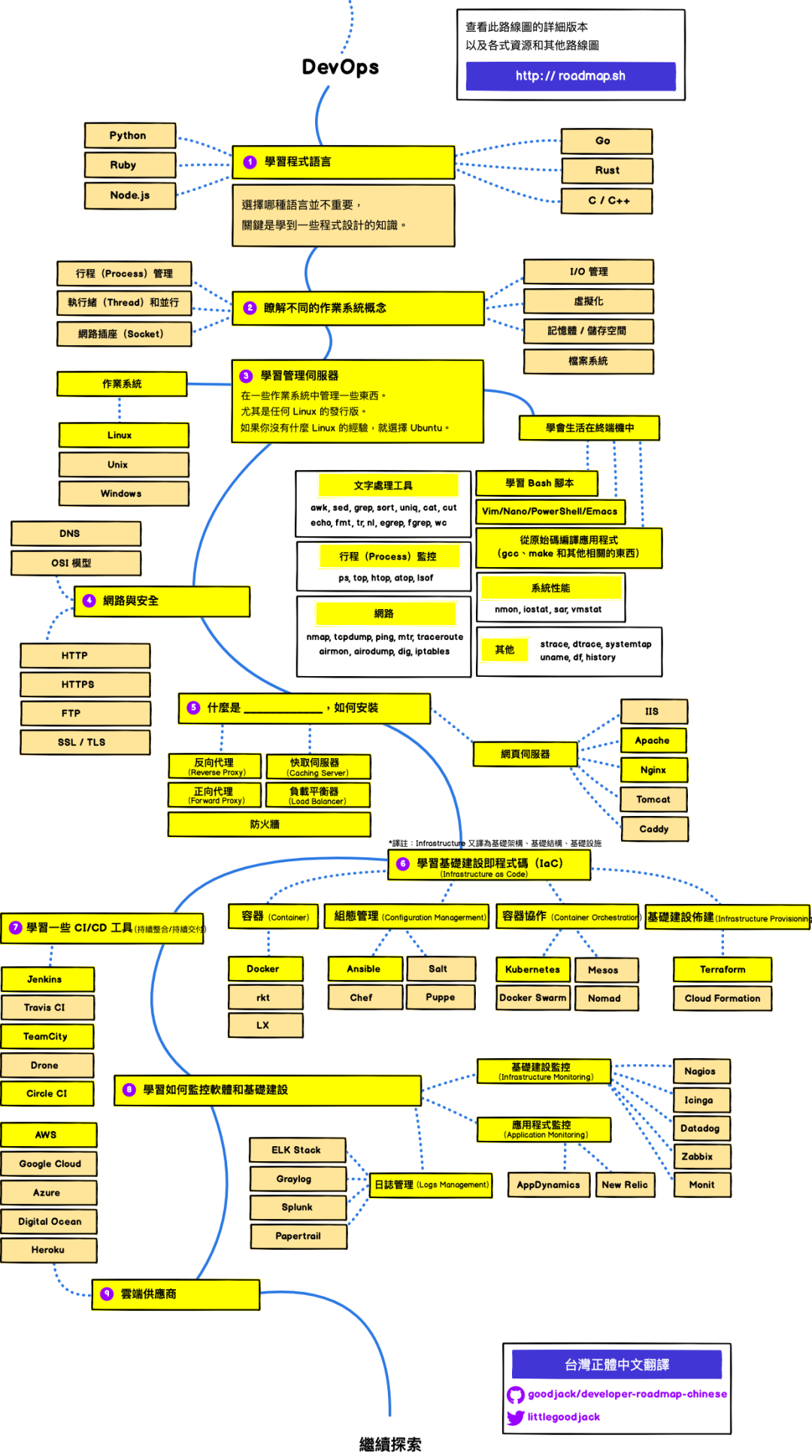 從 2017 年開始注意到這個 repo 覺得獲益良多,所以就試著翻譯看看,分享給更多需要的人。由於這裡是翻譯 repo,關於內容的任何建議,推薦你直接回饋給 kamranahmedse/developer-roadmap,當然需要我協助也是可以的 :D
