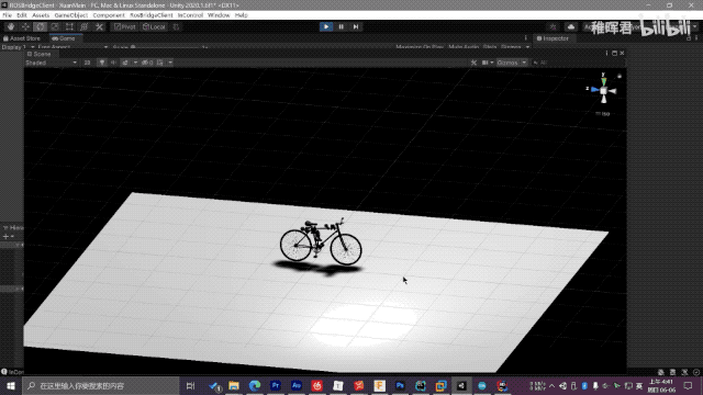 在数学建模之后,稚晖君还采用了游戏引擎Unity作为仿真环境,像正经自动驾驶研发那样,先在仿真环境里让自行车跑了个踏实。