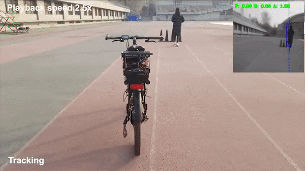 于是,在深度相机、激光雷达等传感器的帮助之下,这辆自行车能够检测出周围的物体,实现避障和跟随: