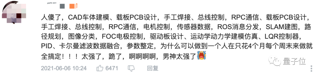 另外,也有网友提出,用动量轮来控制平衡属于某种意义上的作弊。对此,稚晖君回应:现在的龙头传动结构设计不太合理,之后会尝试只用龙头控制平衡。