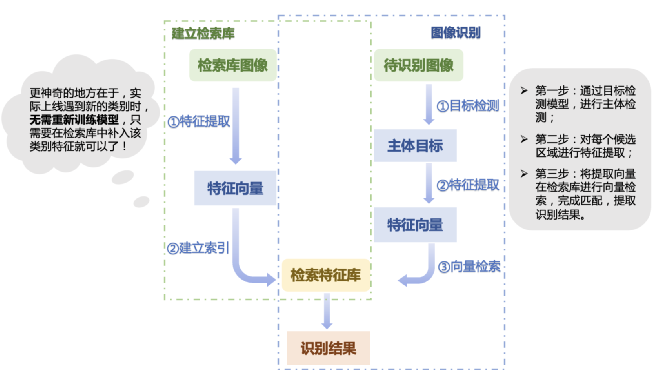 开发者不仅可以单独或自主组装使用这四个模块,还可以直接采用构建好的车辆识别、LOGO识别、商品识别、动漫识别四个系统。只需要补充好检索库,就可以直接投产使用了!