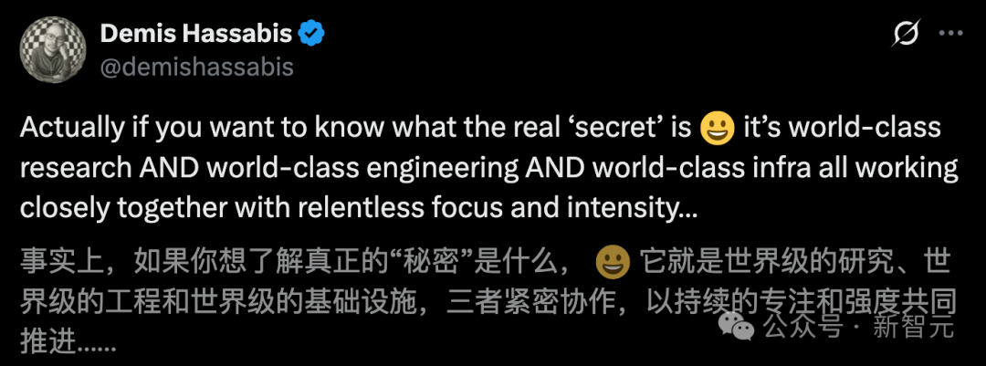 谷歌DeepMind CEO Hassabis一语道破天机,「世界级研究+世界级工程+世界级基础设施」。
