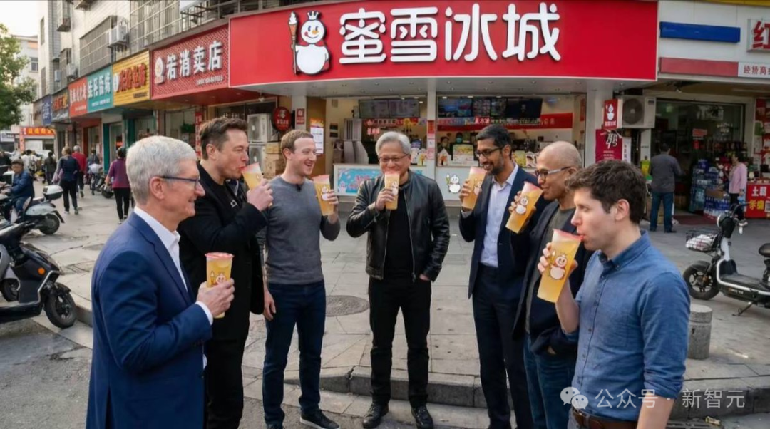 还有网友恶搞系列——巨头CEO们一起喝「蜜雪冰城」。