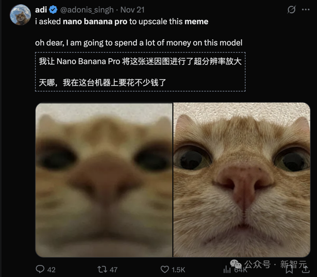 提升梗图的分辨率,更是Nano Banana Pro的拿手菜: