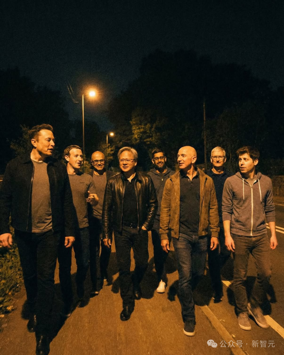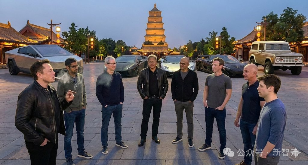 马斯克、老黄、劈柴、纳德拉、小扎、奥特曼、库克、贝索斯悉数在场。