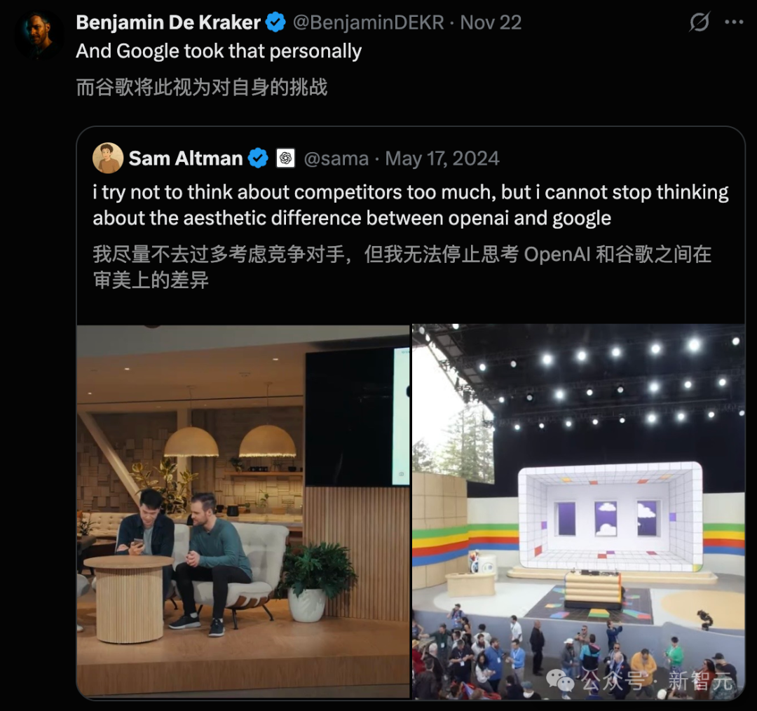 2024年一场发布会,奥特曼还不忘调侃谷歌的审美。估计现在,已经哑口无言。