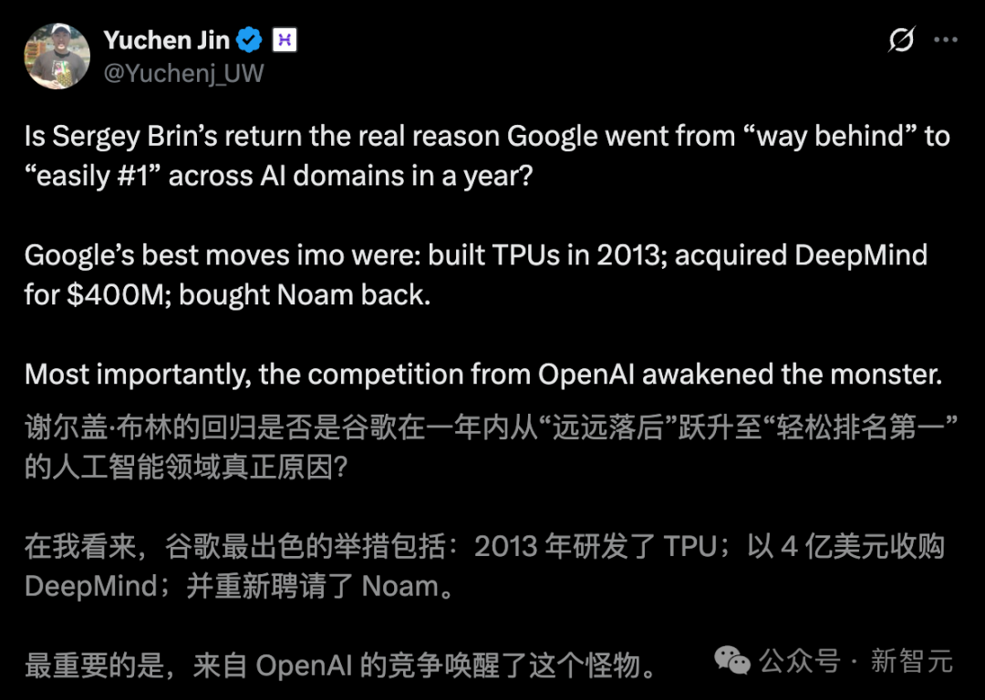 Hyperbolic CEO Yuchen Jin点评道,是OpenAI,唤醒了这个沉睡的巨兽。
