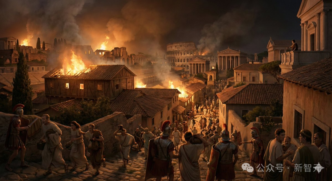 Create an image of the major event that happened at these coordinates: 41°53′36″N 12°28′58″E , its year July 19, 64 AD , intereeesting !