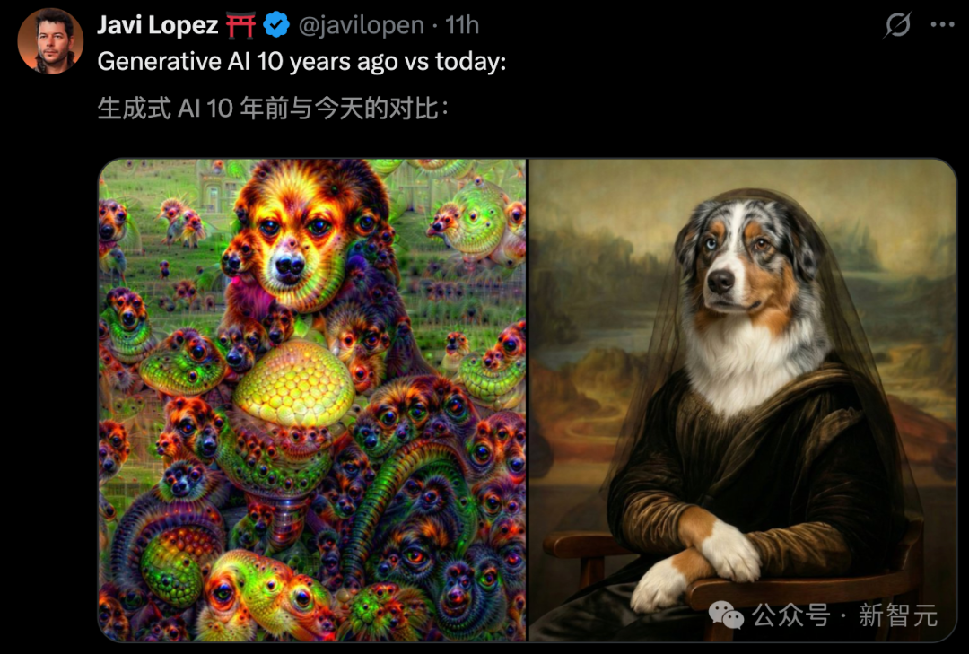 最后再致敬一下谷歌,生成式AI十年前与今天的对比,这种跨时代的飞跃,便是最好的证明。