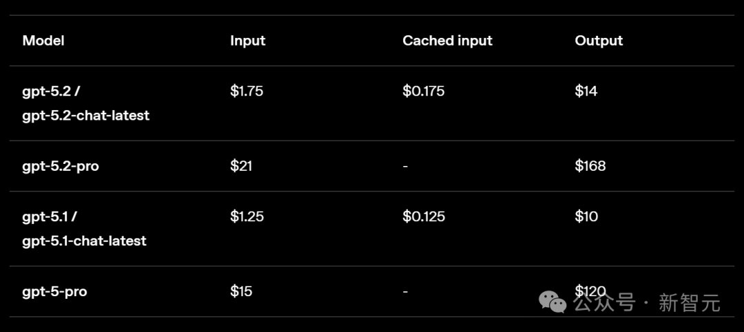 GPT‑5.2的定价为1.75美元/百万输入Token,14美元/百万输出Token,缓存输入有90%的折扣。