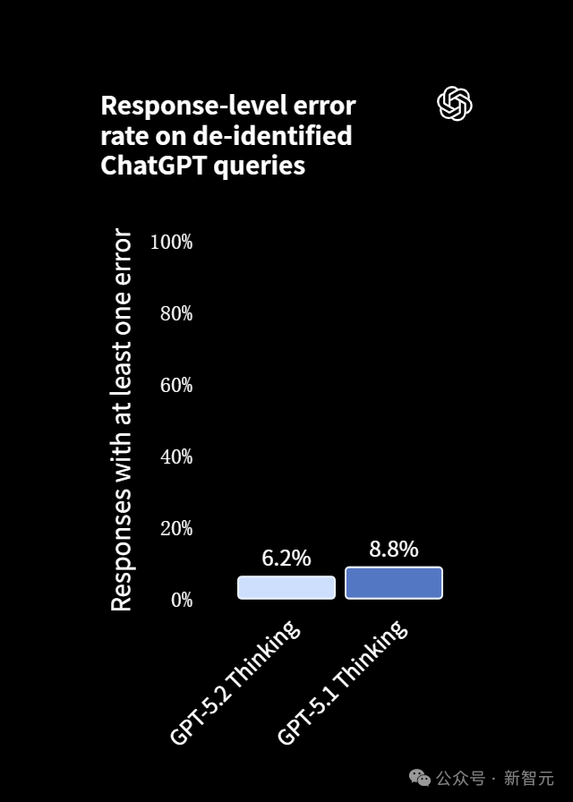GPT‑5.2 Thinking比GPT‑5.1 Thinking的幻觉更少。