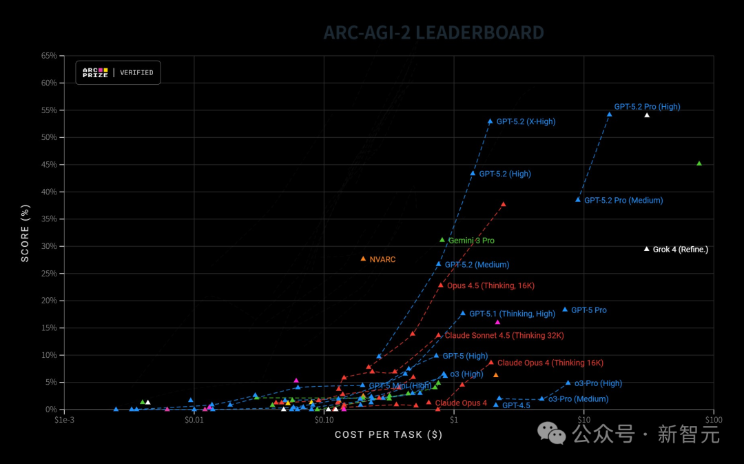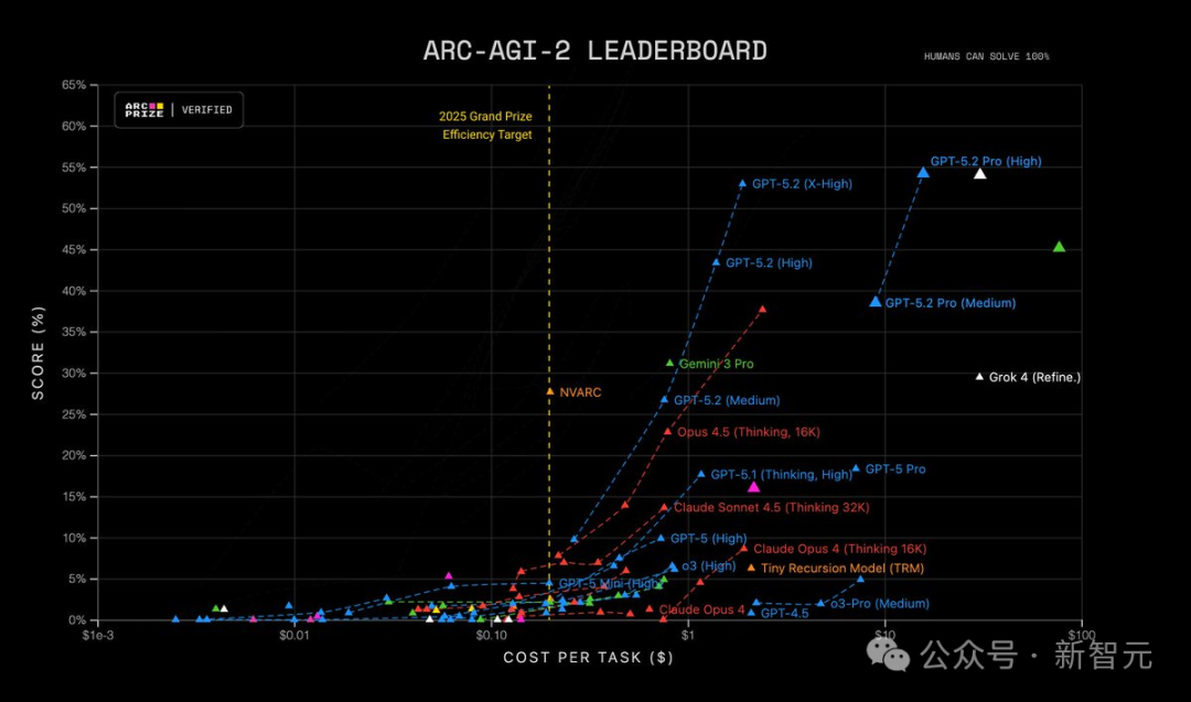 ARC-AGI-2:GPT-5.2 Pro以52.9%的绝对优势登顶全球第一;