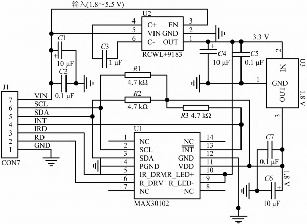 某些晶体可以因为温度变化而引起晶体表面电荷, 辐射红外线。 红外非接触传感器的工作原理为探测物体表面红外辐射能量, 并将其转变为易于测量的电信号或其他形式的量。 MLX90614 模组集成了用于探测目标温度和环境温度的热电偶 MLX81101 和用于处理热电偶输出模拟信号的专用集成芯片 MLX90302 , 由迈来芯公司研发和生产。