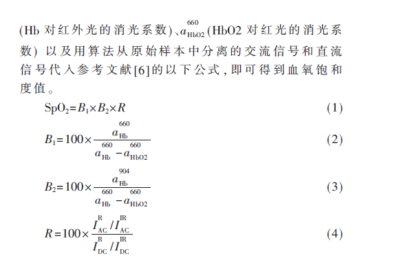 从 MAX30102 中获取的数据信号为原始信号, 需经过算法处理才能得到测试者的心率值与血氧值。 对于从该模块采集出来的数据信号进行处理的方法, 常用的有两种: 一种是时域分析, 即算出脉搏数据信号( PPG) 的平均波峰距, 再用一分钟除以这个波峰距即可得到心率值; 另一种是通过对 PPG 信号进行 FFT 变换得到频域中脉搏波信号的频段, 再将这个频率值乘以一分钟得到心率值。 首先是第二种方法, 经过了在 STM32VET6 使用FFT ( 快速傅里叶变换) 算法对 PPG 信号的处理后, 发现这种方法计算心率值存在时间和精度相矛盾的问题, 由以下公式可得出: