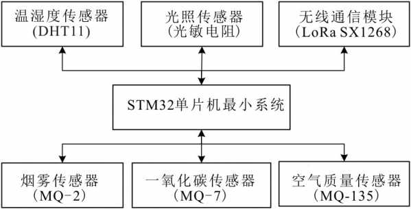 信息采集子系统硬件部分主要包括STM32单片机最小系统、传感器电路和无线通信模块等3个部分,硬件结构如图2所示。
