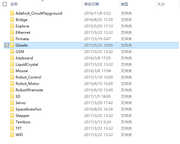 第五步:解压工程文件,将Gizwits文件夹复制粘贴到Arduino安装目录下的Library文件夹下。