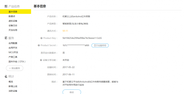 第二步:登录机智云社区开发者中心,创建产品,选择WIFI方案,并保存。