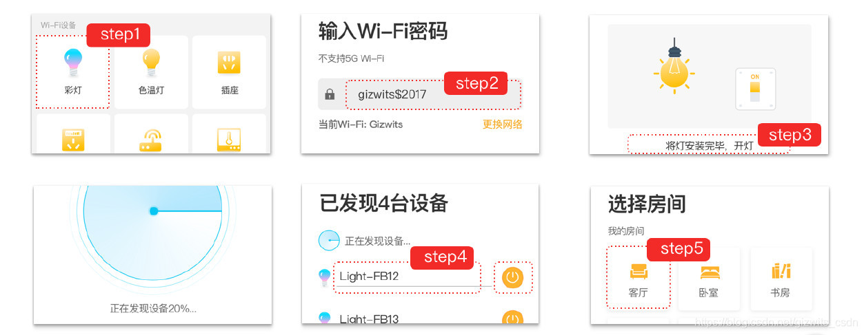 a. 自动添加:点击右上角“+”选择“添加设备”,选择需要添加的设备品类,首次使用设备配网无需重置设备,设备已处于配置状态,根据配网提示进入自动配网模式,添加成功后可编辑设备名称并分配房间,进行设备控制;(若需要重置设备,关开灯5次,待灯呼吸亮灭5秒即可。)