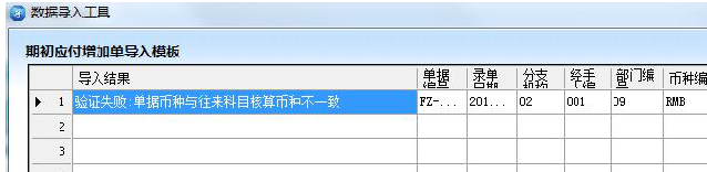 问题描述1:A8 9.82的版本,通过Excel表导入期初应付增加单提示:单据币种与往来科目核算币种不一致。