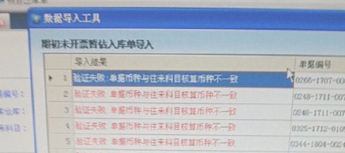 问题描述2:A8 9.88版本,期初未开票暂估入库单通过Excel表导入提示:单据币种与往来科目核算币种不一致。