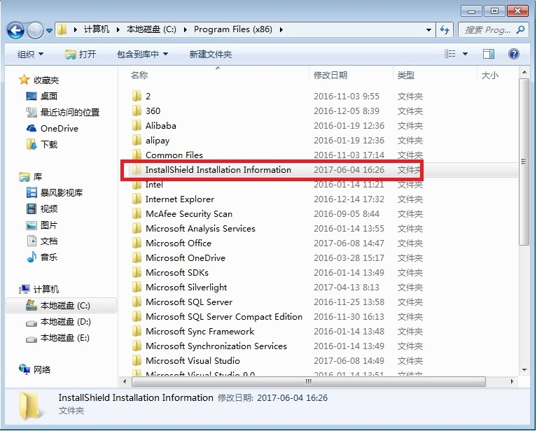 这个问题主要是由于之前安装软件时产生的记录文件残留在电脑中导致,一般这些记录文件会自动生成在C盘/ Program Files文件夹/ InstallShield Installation Information文件夹中;这个InstallShield Installation Information文件夹属于隐藏文件,打开Program Files后基本看不到,很容易误解没有这个文件夹,最主要的就是要显示隐藏的文件夹,操作系统不同的话显示隐藏文件夹的方法可能也会不一样。